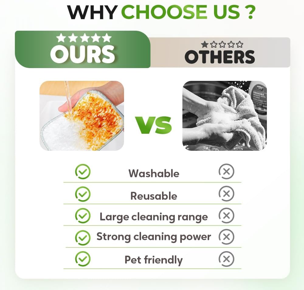 🔥Durable & Reusable: The fine-hole design of our dishwashing rags enhances their foaming capability. Wet them to efficiently clean tableware, pots, and other kitchen items, or use them directly to clean grills and stoves. Drains/dries rapidly to prevent odors. Wash and reuse endlessly, reducing waste and cost versus disposable alternatives.