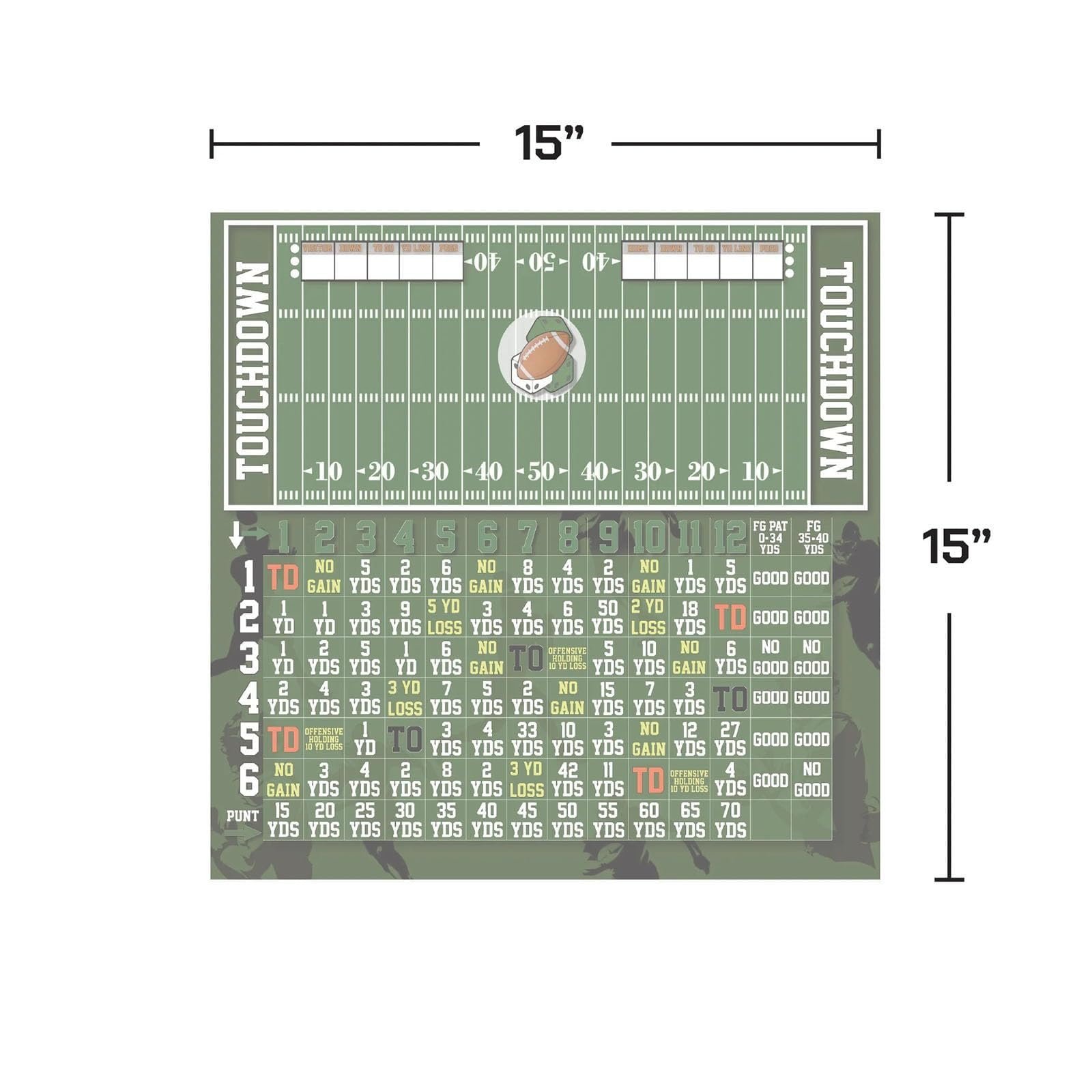 • Includes: Dice tray, scoreboard, 3 dice, football marker, instructions